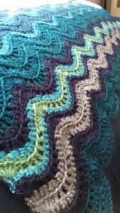 I found a ton of patterns that I wanted to try out, but wasn’t sure if the yarn would be too busy for a complicated shawl and didn’t really like the knitted swatches I saw online. I decided to give the shell gloves another shot. The results are lovely!