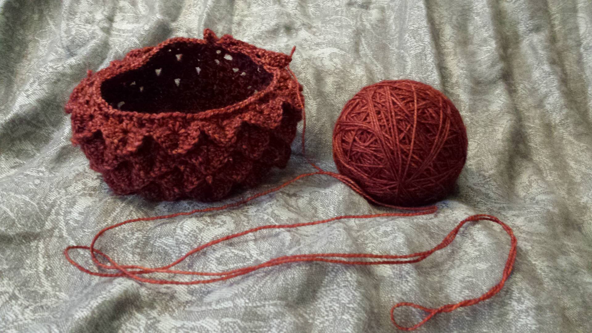 The base of the bag is quite a big bigger than the pattern recommends, and the yarn quite a bit thinner… It’s gonna take a while, but hopefully it’ll come out looking nifty.