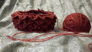 After going back through my bundles of favorites on Ravelry (I save a lot of patterns), I finally decided to pick up a project I’d wanted to start for a while. This poor, unfortunate glove is in the process of being reborn as a super cool Dragon Egg Bag, but with some adjustments.